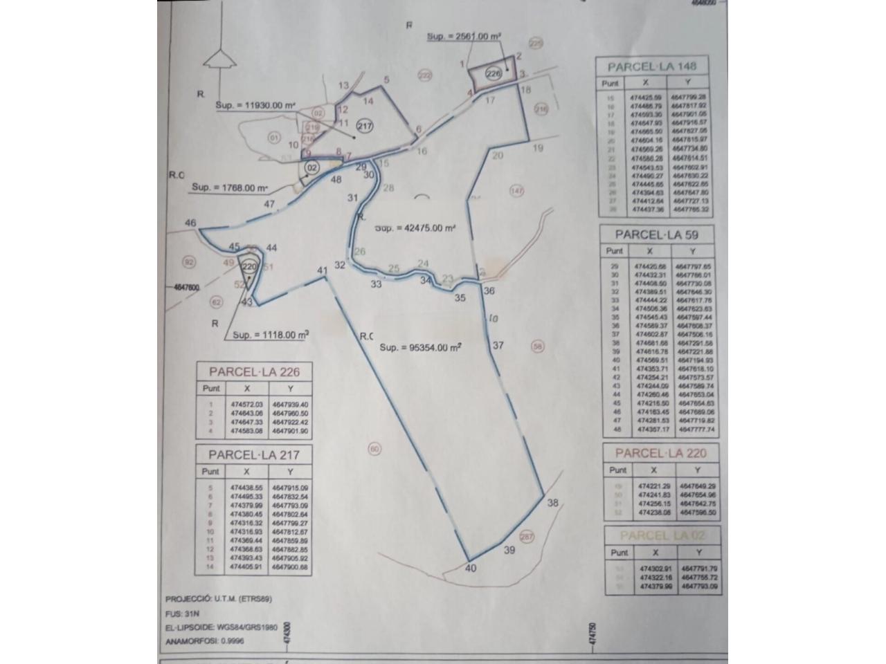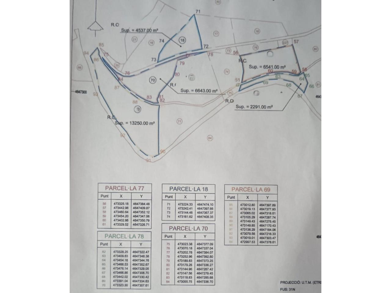 Íntegrament són 4 finques que contenen diverses parcel·les i fan un total de 155.206 m2.